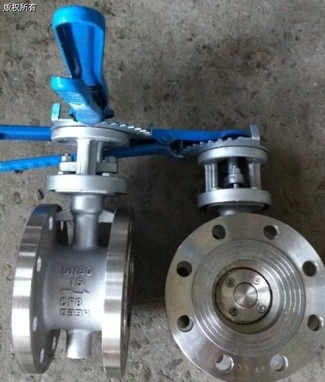 不锈钢蝶阀作为一种用来实现管路系统通断及流量控制的部件,已在石油、化工、冶金、水电等许多领域中得到极为广泛地应用。在已公知的蝶阀技术中,其密封形式多采用密封结构,密封材料为橡胶、聚四氟乙烯等。由于结构特征的限制,不适应耐高温、高压及耐腐蚀、抗磨损等行业。现有一种比较先进的蝶阀是三偏心金属硬密封蝶阀,阀体和阀座为连体构件,阀座密封表面层堆焊耐温、耐蚀合金材料。多层软叠式密封圈固定在阀板上,这种蝶阀与传统蝶阀相比具有耐高温,操作轻便,启闭无磨擦,关闭时随着传动机构的力矩增大来补偿密封,提高了蝶阀的密封性能及延长使用寿命的优点。